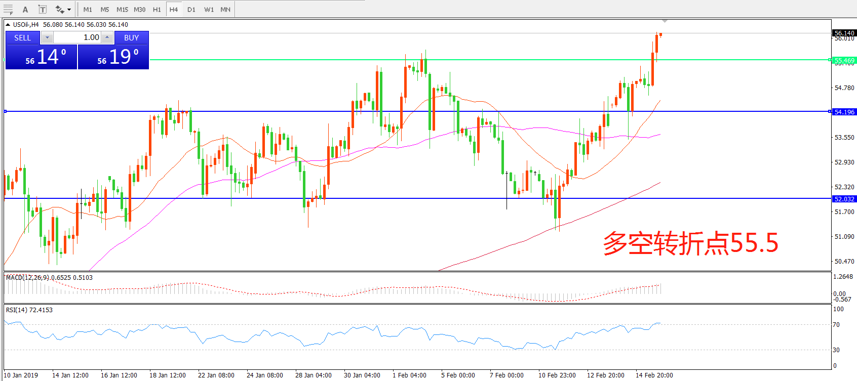 交易策略:在55.50  之上看涨,目标58.00    62.00