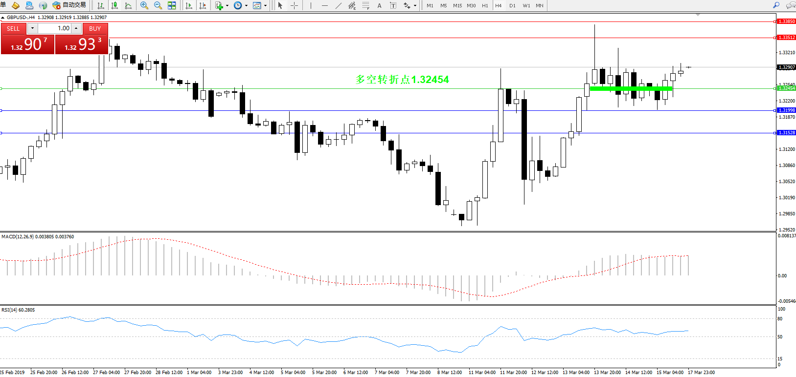 交易策略:1.32454上方看涨,目标1.33512、1.33850
