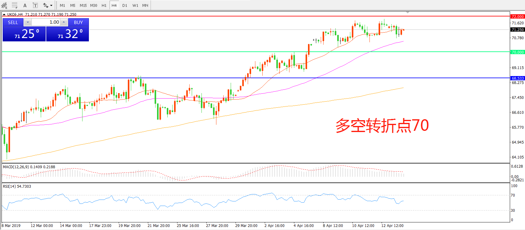 多空转折点:70.00