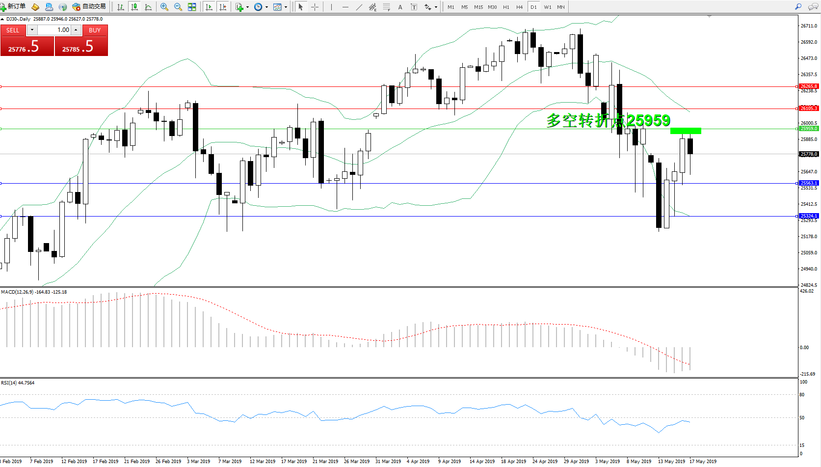 道琼斯指数收跌98.70点,跌幅0.38%,报25764.00点。上周五公布的数据显示,美国5月初消费者信心跳升至15年高位,因市场对经济前景的信心增强,不过多数升幅是在贸易战升级前录得的。此前白宫表示,特朗普总统将推迟六个月决定是否对进口汽车和零部件征收关税,以便有更多时间与欧盟和日本进行贸易谈判。