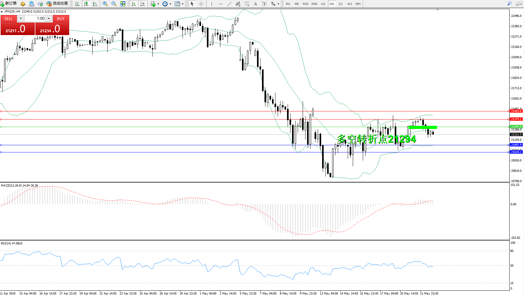 日经指数收盘小升,整体市场气氛审慎,此前数据显示日本4月出口再度下滑,抵销了一些经济的正面迹象。出口股和科技股回吐稍早涨幅,日经指数N225收高0.1%至21,283.37点,盘中窄幅区间波动,因美国和中国的贸易战没有降温的迹象,市场信心仍旧脆弱。稍早数据显示,日本4月出口连续第五个月萎缩,虽然机械订单意外回升,暗示经济前景恐怕步履维艰。摩根资产管理全球市场策略师Yoshinori Shigemi说道:“市场仍趋紧,日股仍有进一步下滑的风险。”