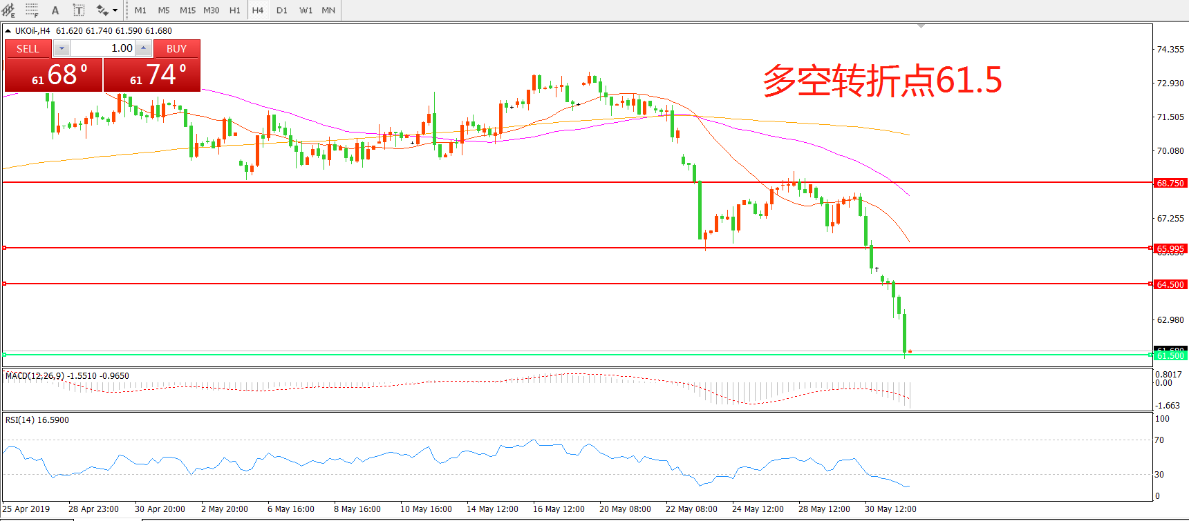 北京时间周五早上,美国总统特朗普突然“翻脸”,宣布将对来自墨西哥的所有进口商品加征5%关税,直到该国阻止移民非法进入美国。特朗普31日在推特发文称,关税将于6月10日生效,“直到非法移民不再经由墨西哥进入美国”。 计划将从6月10日起对墨西哥进口产品征收5%的关税,随后每月上调5%,10月1日起将提高至25%。据美国能源部的数据,美国向墨西哥出口的燃料也比其他任何国家都多,这一威胁加剧了人们对全球经济增长的担忧。 由于特朗普的突然翻脸,布伦特原油跌至61.68美元/桶,日内跌幅5.92%,本月跌幅9.88%。