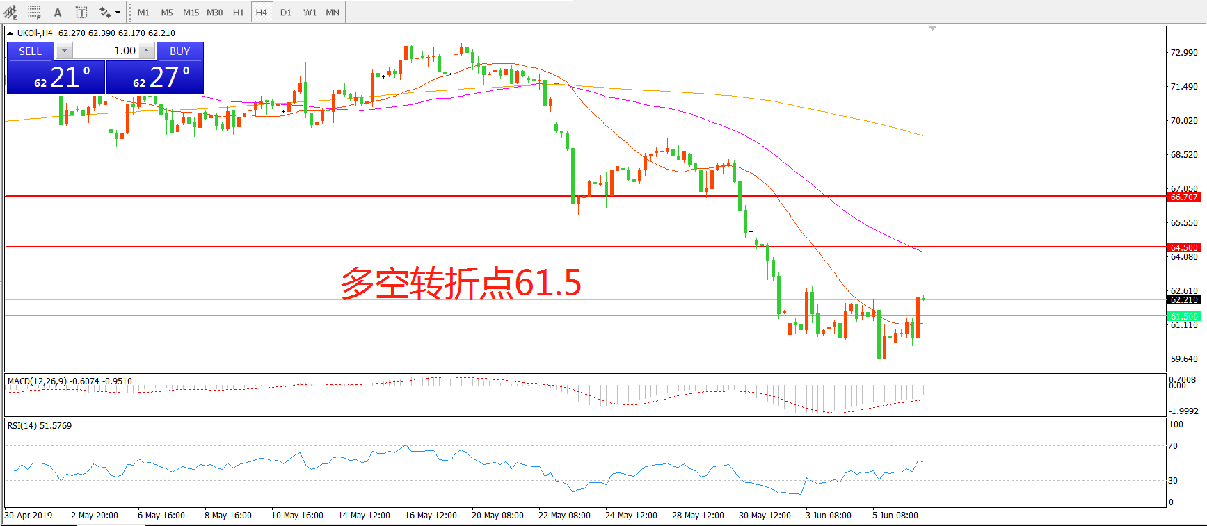 交易策略:在61.50之下看跌,目标57.50     53.00
