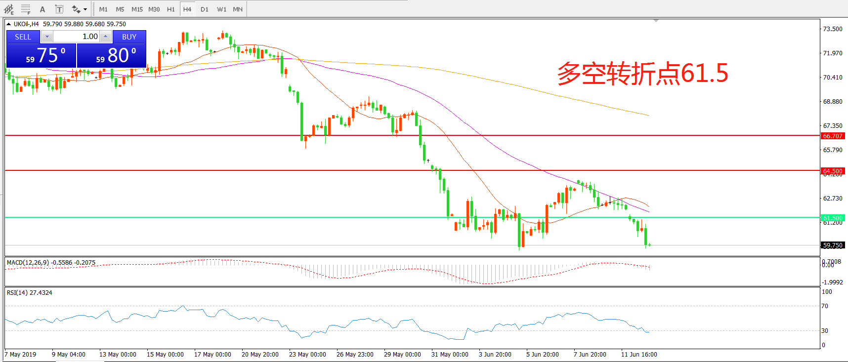 交易策略:在61.50之下看跌,目标57.50 53.00
