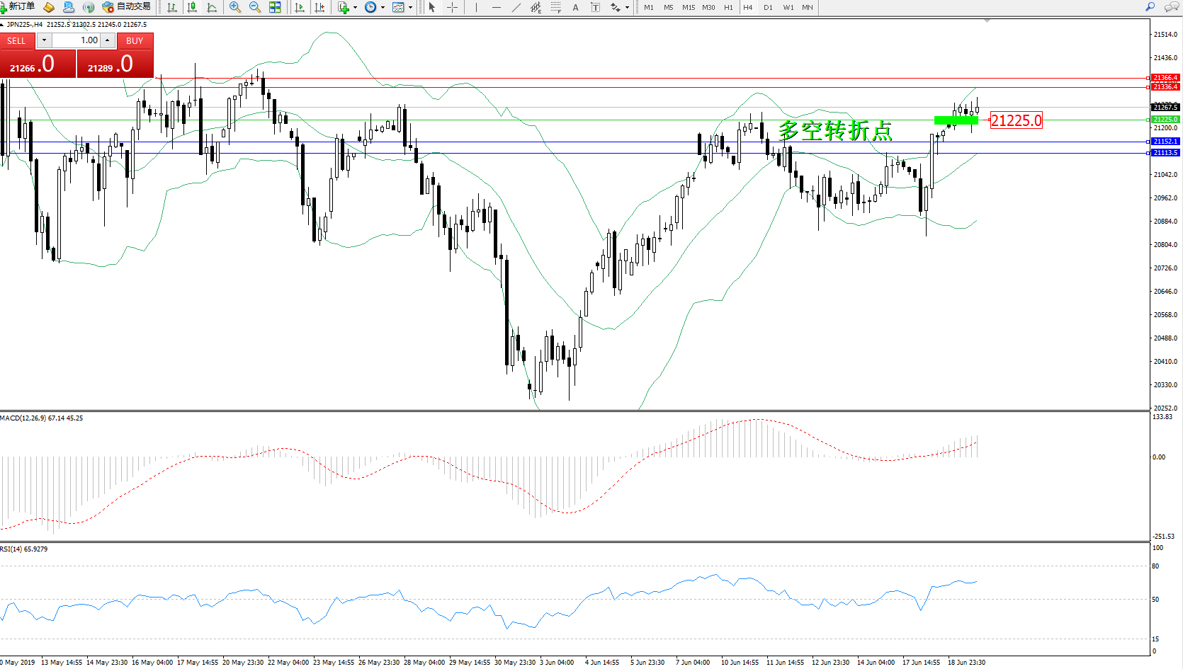 日经225指数6月19日(周三)收盘上涨360.79点,涨幅1.72%,报21333.50点。美股微涨,美联储利率决议不变,加息点阵图首次发出降息信号,但尚未真正讨论降息规模,今年经济表现合理,GDP增速预期显示增长前景模糊。关注日本央行公布利率决议、召开发布会。