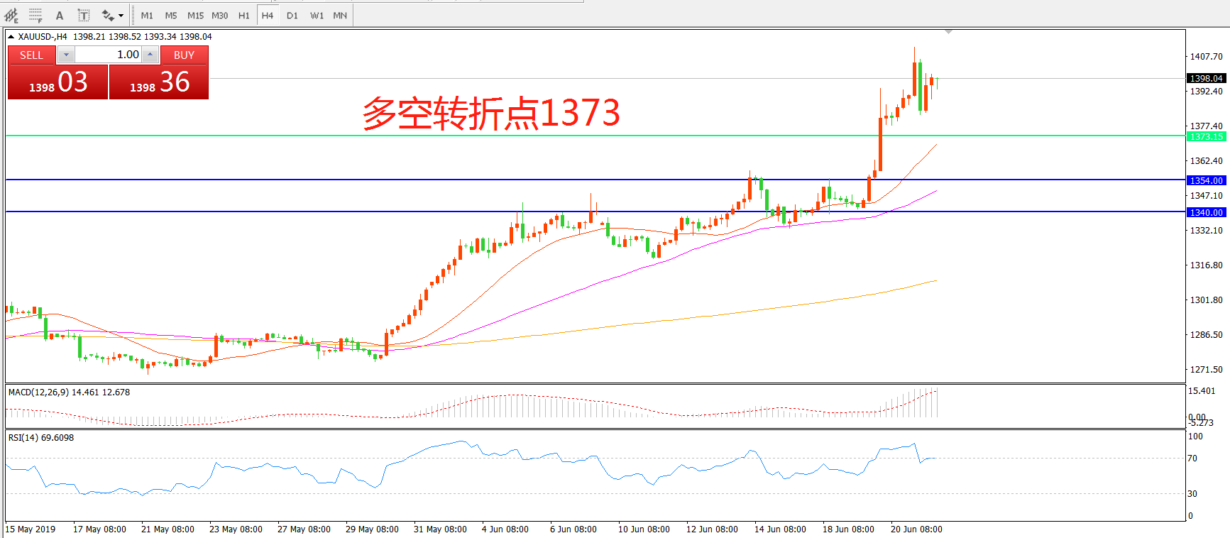 交易策略:在1373.00之上看涨,目标1400.00   1430.00
