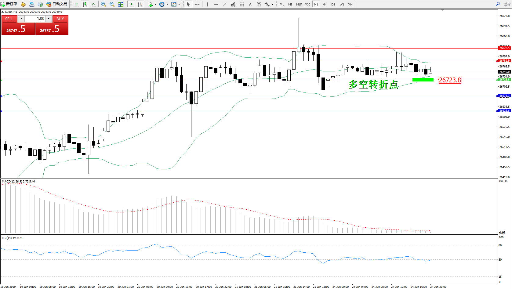 道琼斯指数6月24日(周一)收盘上涨8.40点,涨幅0.03%,报26727.54点。高盛在报告中表示,即使经济数据没有显示出特别令人担忧的经济前景,美联储也可能在7月降息50个基点,或者在2019年降息超过50个基点。因为如果美联储没有如市场预期般降息,金融环境可能会收紧。高盛预计,短期国债收益率上升1个百分点可能会导致股市下跌7%,美元指数DXY上涨2%。高盛指出,即使美联储降息,金融环境也可能收紧,但收紧幅度将低于投资者的预期。