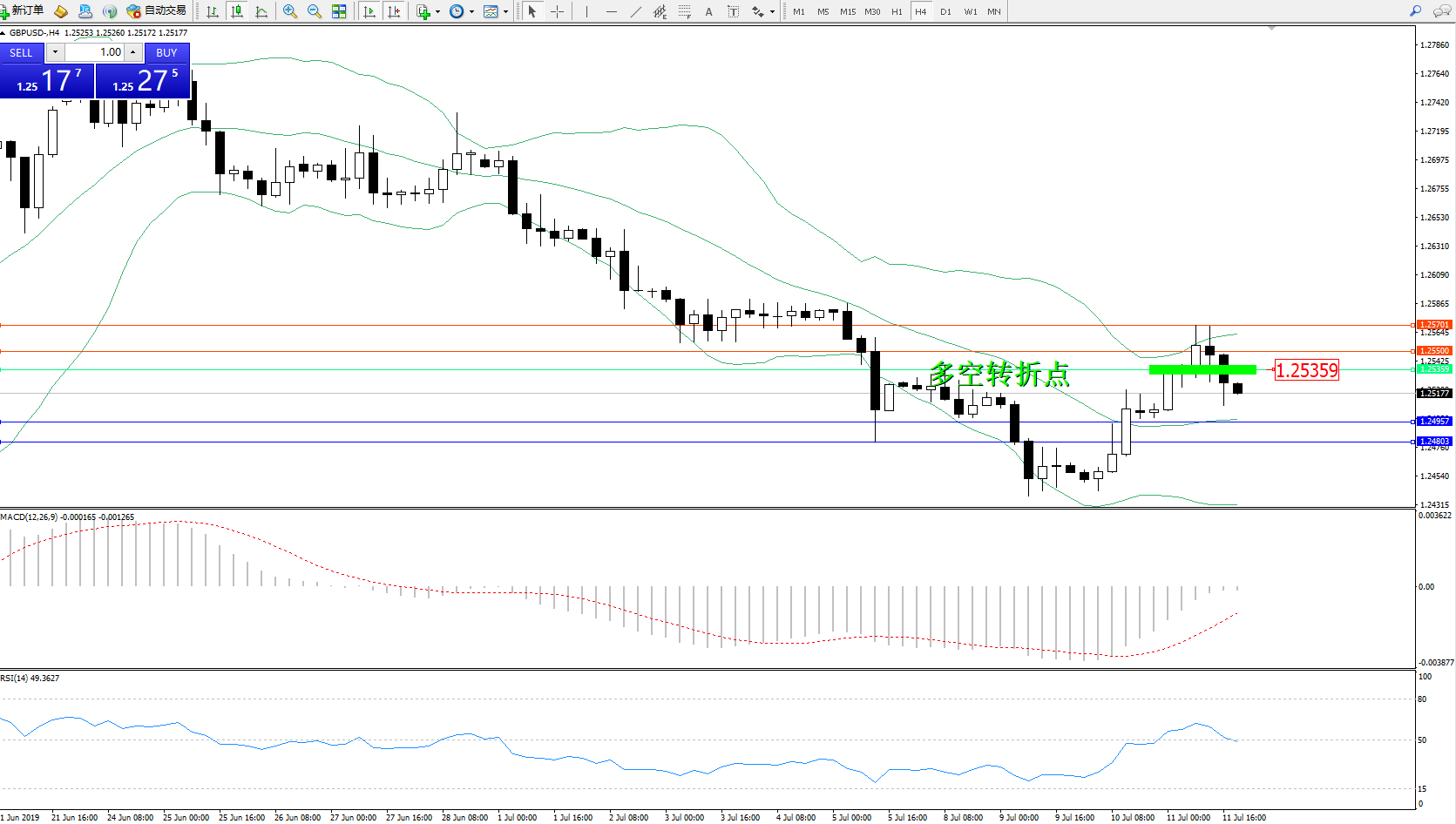 备选策略:1.25359上方看涨,目标1.25500、1.25701