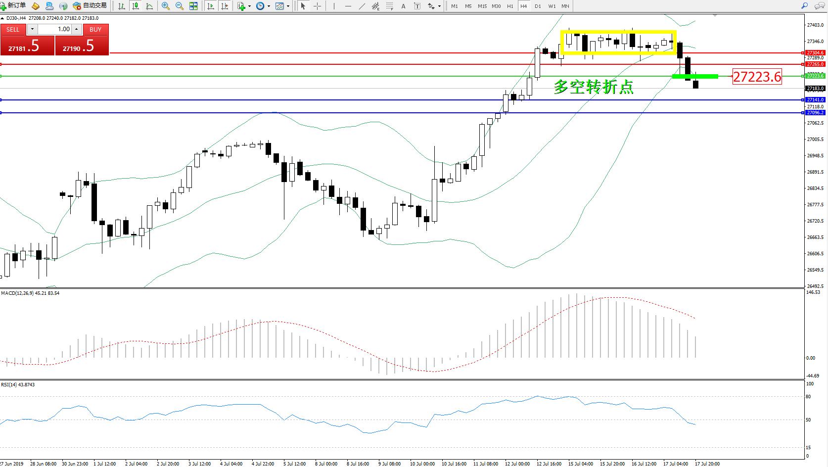 道琼斯指数717日(周三)收盘下跌115.80点,跌幅0.42%,报27219.79点。美国新屋开工数据连续2个月下跌,营建许可数据跌至2年来新低,表明尽管抵押贷款利率降低,但房地产市场持续惨淡。FED加速降息概率回升,且全球贸易形势现新爆点。