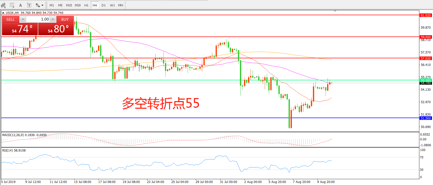 交易策略:在55.00之上看涨,目标57.00 59.00
