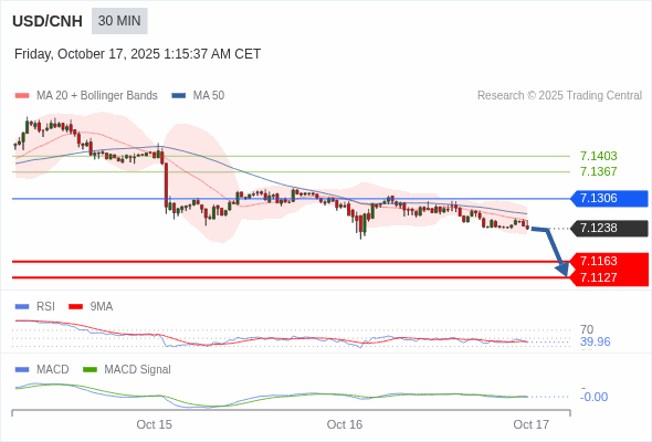 美元/人民币 当日内 : 看跌,在 7.1306 之下。