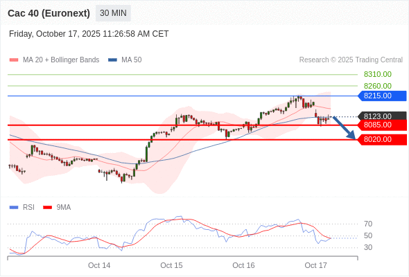 在 8215.00 之下,看跌,目标价位为 8085.00 ,然后为 8020.00 。