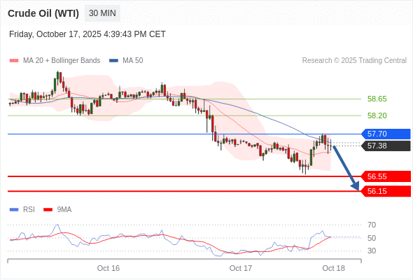 在 57.70 之下,看跌,目标价位为 56.55 ,然后为 56.15 。