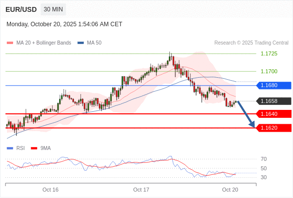 在 1.1680 之下,看跌,目标价位为 1.1640 ,然后为 1.1620 。