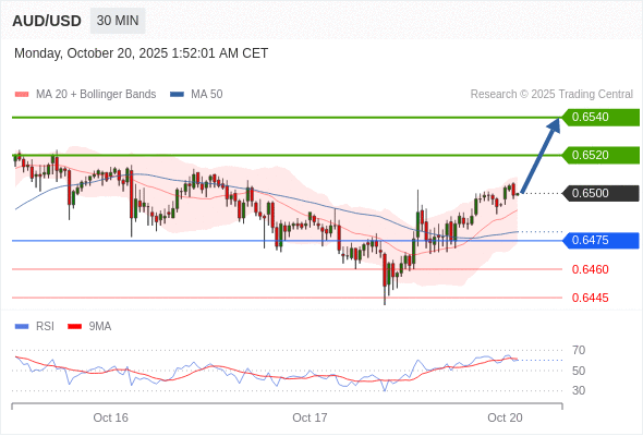 在 0.6475 之上,看涨,目标价位为 0.6520 ,然后为 0.6540 。