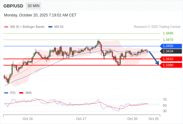 在 1.3450 之下,看跌,目标价位为 1.3410 ,然后为 1.3390 。