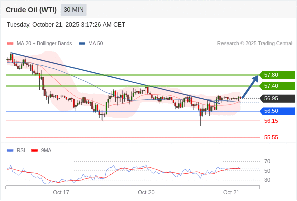 在 56.50 之上,看涨,目标价位为 57.40 ,然后为 57.80 。