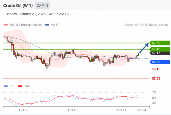 在 56.60 之上,看涨,目标价位为 57.40 ,然后为 57.80 。