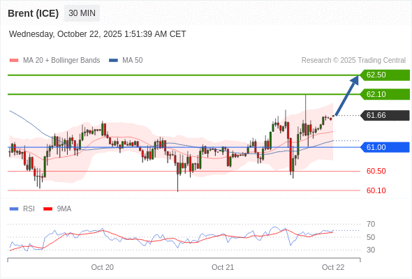 在 61.00 之上,看涨,目标价位为 62.10 ,然后为 62.50 。