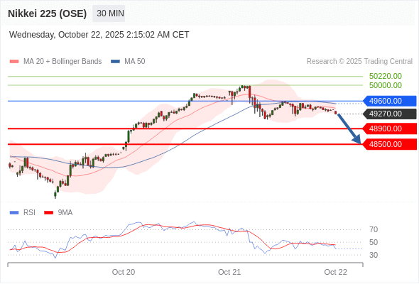 在 49600.00 之下,看跌,目标价位为 48900.00 ,然后为 48500.00 。