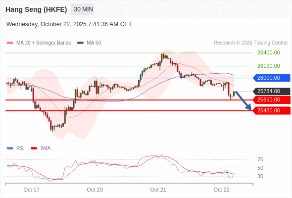 香港恒生指数期货 当日内: 短期关键阻力位在26000.00。