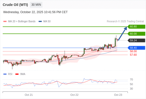 在 58.40 之上,看涨,目标价位为 60.00 ,然后为 60.80 。