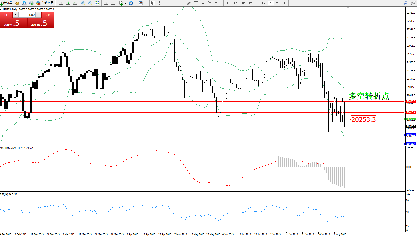日经225指数8月14日(周三)收盘上涨168.56点,涨幅0.82%,报20624.00点。关于国际贸易关系缓和、谈判将会继续的消息提振了市场情绪。投资者密切关注美国国债收益率动态。美国国债收益率曲线倒置,为2007年美国次贷危机加剧以来首见,这显示了全球最大经济体可能滑入衰退。美联储防止美国经济陷入衰退的力量可能会减弱,到2021年10年期美债收益率可能下跌至零。