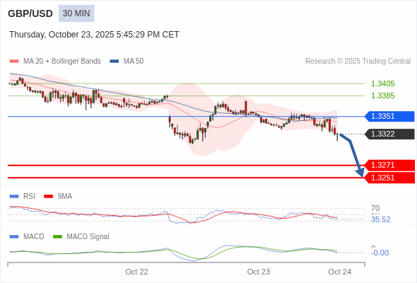 英镑/美元 当日内 : 看跌,在 1.3351 之下。