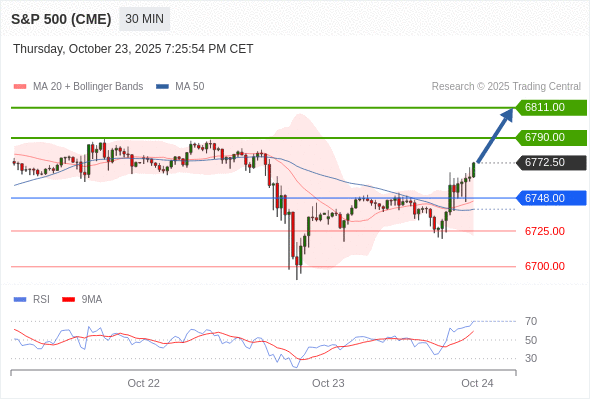 在 6748.00 之上,看涨,目标价位为 6790.00 ,然后为 6811.00 。