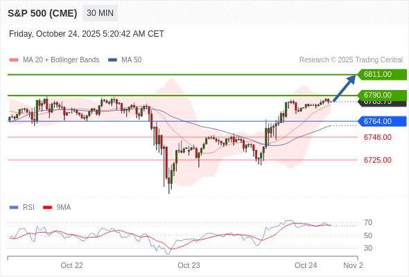 在 6764.00 之上,看涨,目标价位为 6790.00 ,然后为 6811.00 。