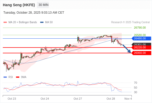 交易策略: 在 26480.00 之下,看跌,目标价位为 26220.00 ,然后为 26060.00 。