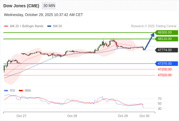在 47370.00 之上,看涨,目标价位为 48110.00 ,然后为 48300.00 。