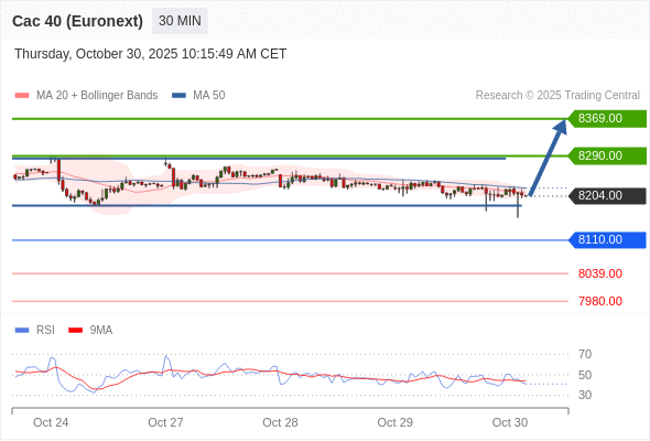 在 8110.00 之上,看涨,目标价位为 8290.00 ,然后为 8369.00 。