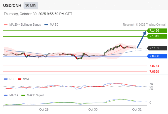 备选策略: 如跌破 7.0938 ,USD/CNH 目标方向定在 7.0744 和 7.0629 。
