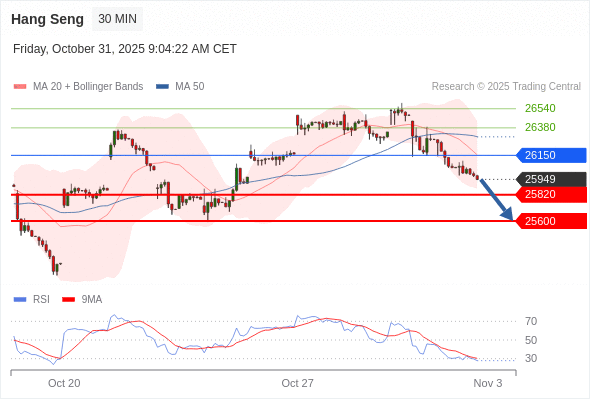 在 26150 之下,看跌,目标价位为 25820 ,然后为 25600 。