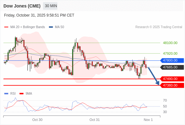 交易策略: 在 47800.00 之下,看跌,目标价位为 47490.00 ,然后为 47380.00 。