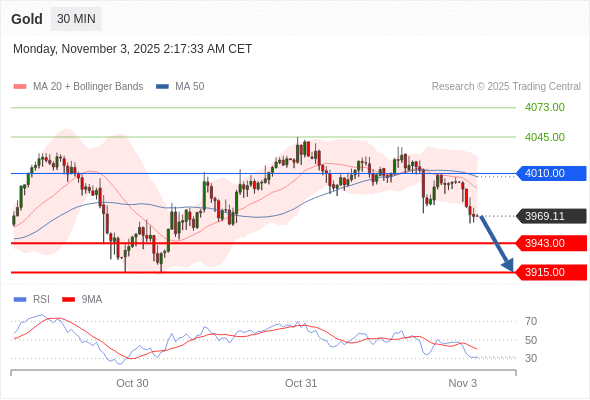 在 4010.00 之下,看跌,目标价位为 3943.00 ,然后为 3915.00 。