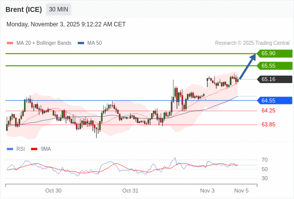 在 64.55 之上,看涨,目标价位为 65.55 ,然后为 65.90 。