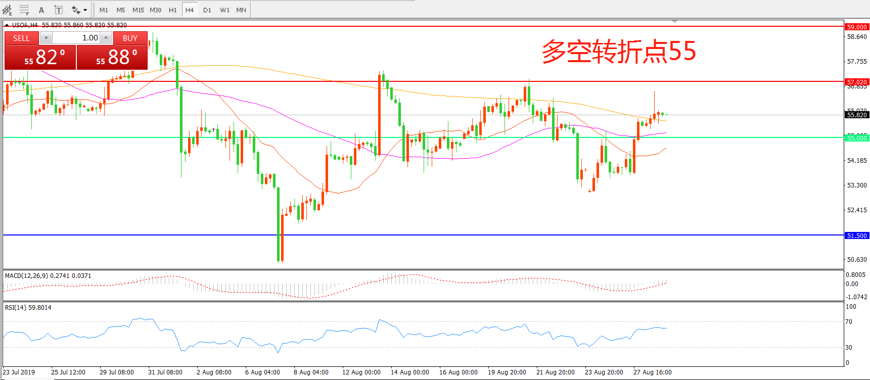 交易策略:在55.00之上看涨,目标57.00 59.00