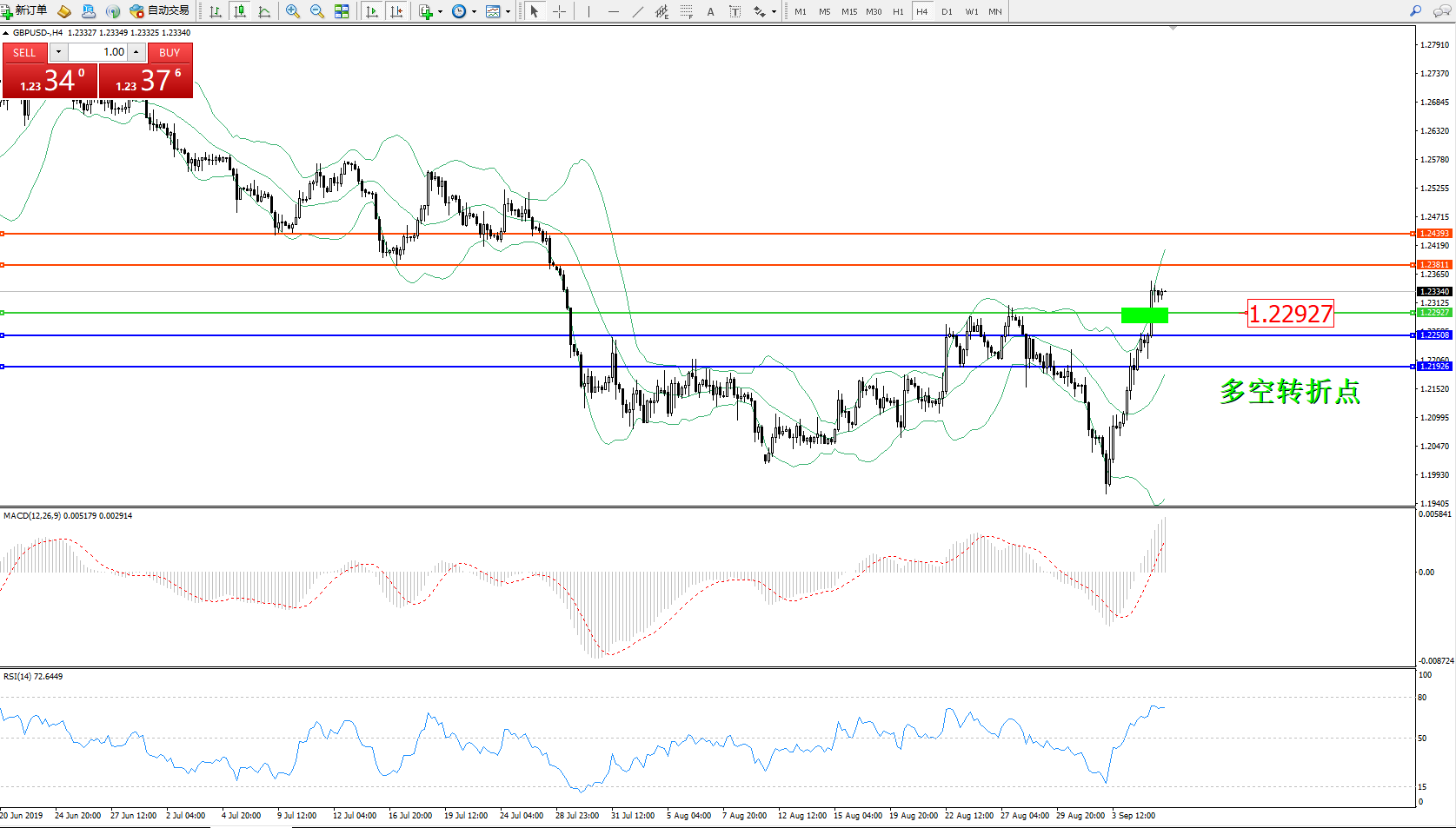 交易策略:1.22927上方看涨,目标1.23811、1.24393