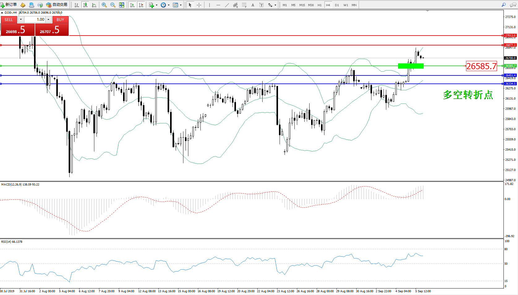 道琼斯指数95日(周四)收盘上涨372.70点,涨幅1.41%,报26728.15点。因经济数据增强了对美国经济的信心,且贸易紧张局势缓解。防御性板块回落,因为强劲的民间就业数据和炙热的服务业缓解对经济衰退的焦虑。富时罗素表示,不断升温的贸易紧张局势已成为数月来最大的股市逆风,因此计划10月初举行高级别贸易谈判的消息刺激股市释放性上涨并不令人意外,归根结底,股票需要盈利增长才能向前发展,而如果没有贸易关系的进展,就无法做到这一点。