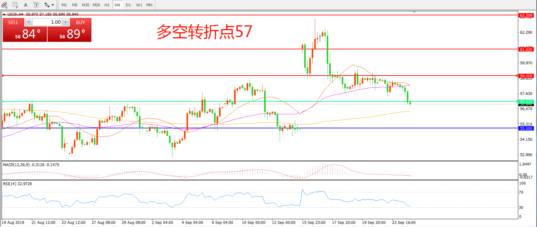 多空转折点:57.00