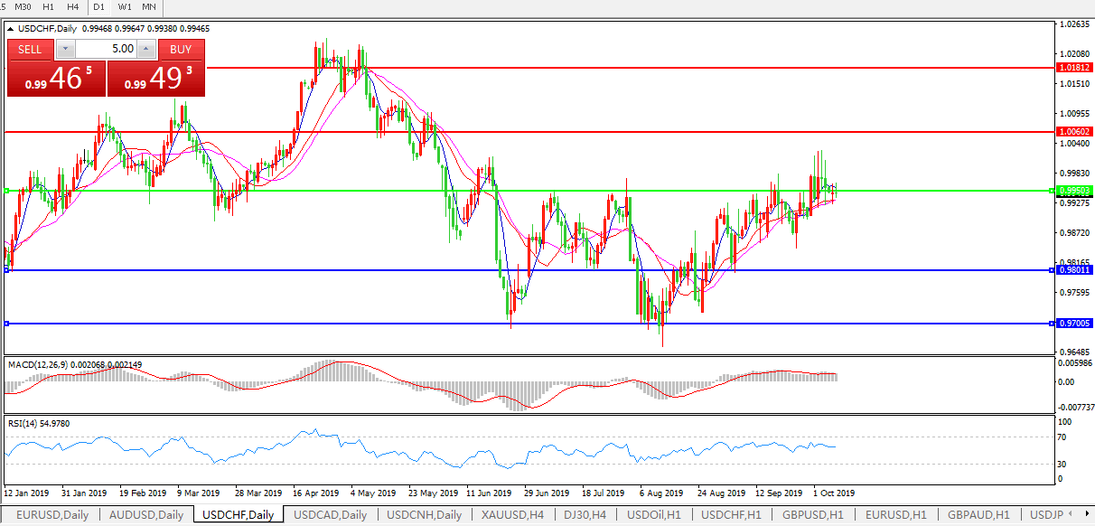 交易策略:0.9950下方看跌,目标0.9800、0.9700