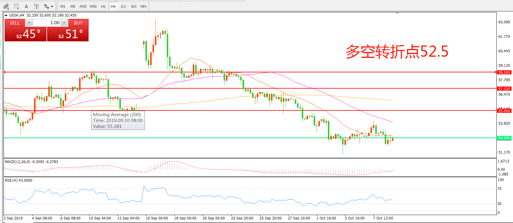 周二(10月8日)美国商务部将28家新公司和机构列入“黑名单”,其中主要包括专攻人工智能、机器学习和数字监控的企业,中国商务部表示中方也将采取一切必要措施,坚决维护中方自身利益。贸易谈判的不确定性令市场上的风险情绪受到抑制, 美国WTI原油周二震荡收跌,最终收报52.48美元/桶。