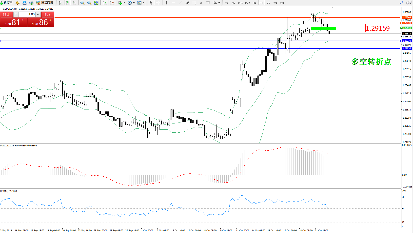 在“二读”“脱欧”协议中以329:229票赢得议会通过后不久,随后进行的对“脱欧”协议立法进程时间表的表决中,约翰逊·鲍里斯的三天倒计时时间表被议会以308:322票否决,这意味着月底顺利“脱欧”的计划落空;消息传来之后,英镑兑美元上蹿下跳,先短线飙升约70点,至1.2999,随后又快速跳水逾120点,跌破1.29整数关口,最低触及1.2862,日内下跌逾0.7%。