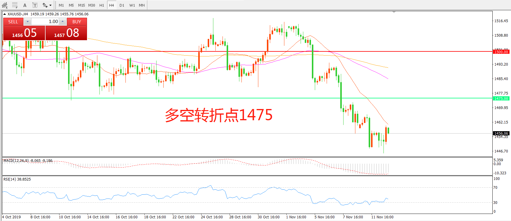 周二(11月12日), 美国总统特朗普在纽约经济俱乐部就贸易政策与贸易谈判发表了讲话,他认为美联储应该继续降息,并表示能够接受负利率。在股市连续大幅上涨之后,投资者调整头寸,等待更多基本面消息对市场的指引。现货金价暂时止跌,最终收报1456.93美元/盎司。今天,民主党将举行对特朗普弹劾听证会,务必重点关注。
