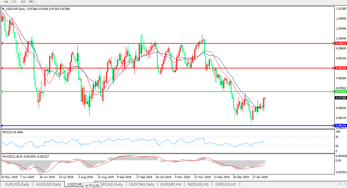 交易策略:0.9765下方看跌,目标0.9600、0.9550