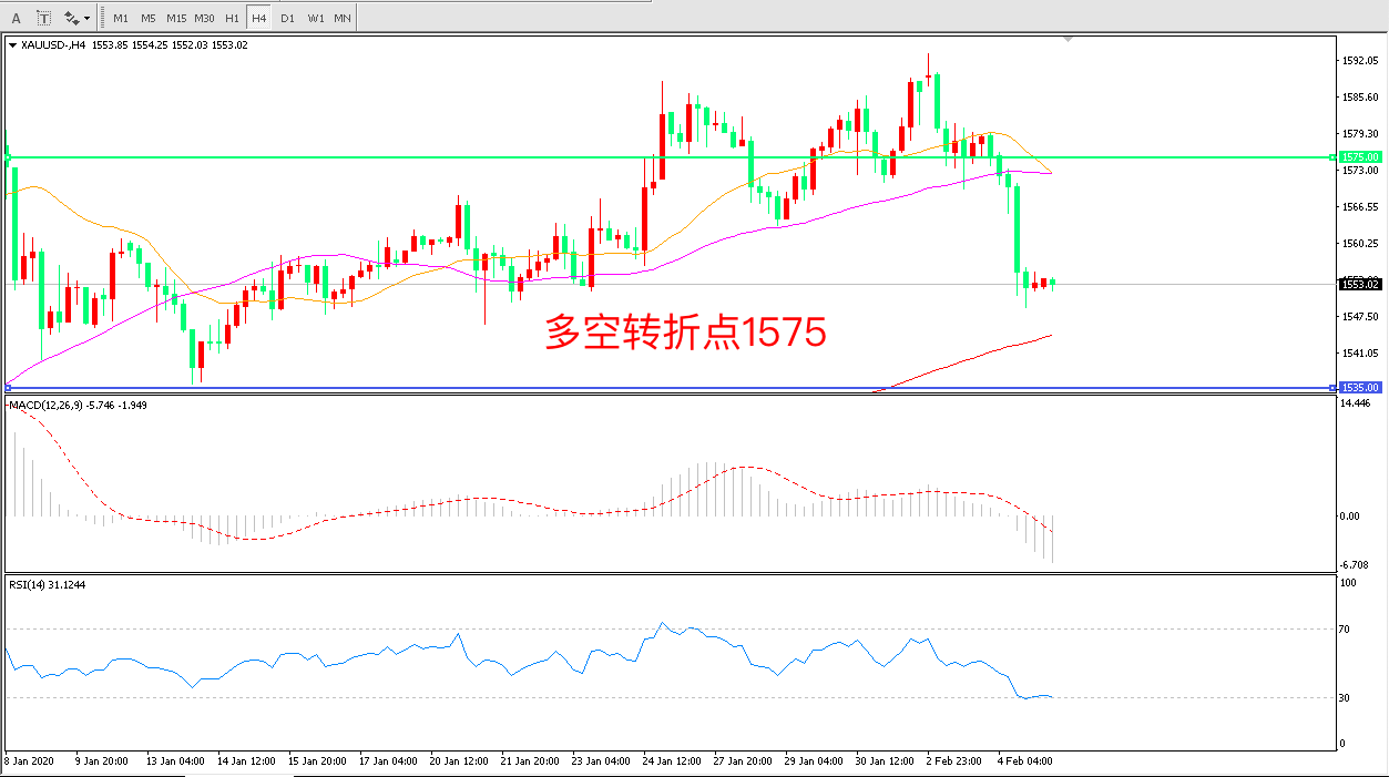 周二(2月4日),国际货币基金组织和世界银行乐观看待中国经济前景,各国股市上涨,风险情绪回升给金价带来压力,现货黄金大幅下跌,收报1553.11美元/盎司。虽然疫情发展依然令市场担忧,但中国政府的多重举措对市场的稳定效果开始显现,这令黄金投资者纷纷锁定获利,从而对金价造成打压。