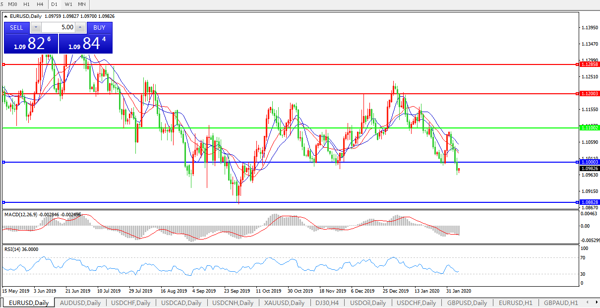 道明证券预计,在德国经济出现恶化迹象后,欧元兑美元可能失守1.0980支撑位;欧元区经济继续显示出进一步恶化的迹象,德国12月份工厂订单数据证实了这一点,2019年12月工厂订单下降了2.1%,而市场普遍预测是上升0.6%;欧洲央行继续提醒投资者,货币政策工具箱空空如也,欧洲央行行长拉加德宣称,这种“低利率和低通胀的环境大大降低了欧洲央行和全球其他央行在面对经济低迷时放松货币政策的空间”;若美国1月非农就业报告强劲,那么欧元兑美元恐跌破1.0950,向下测试2019年10月初创下的多年低点1.0879,北京时间8:41,欧元兑美元报1.0979/81