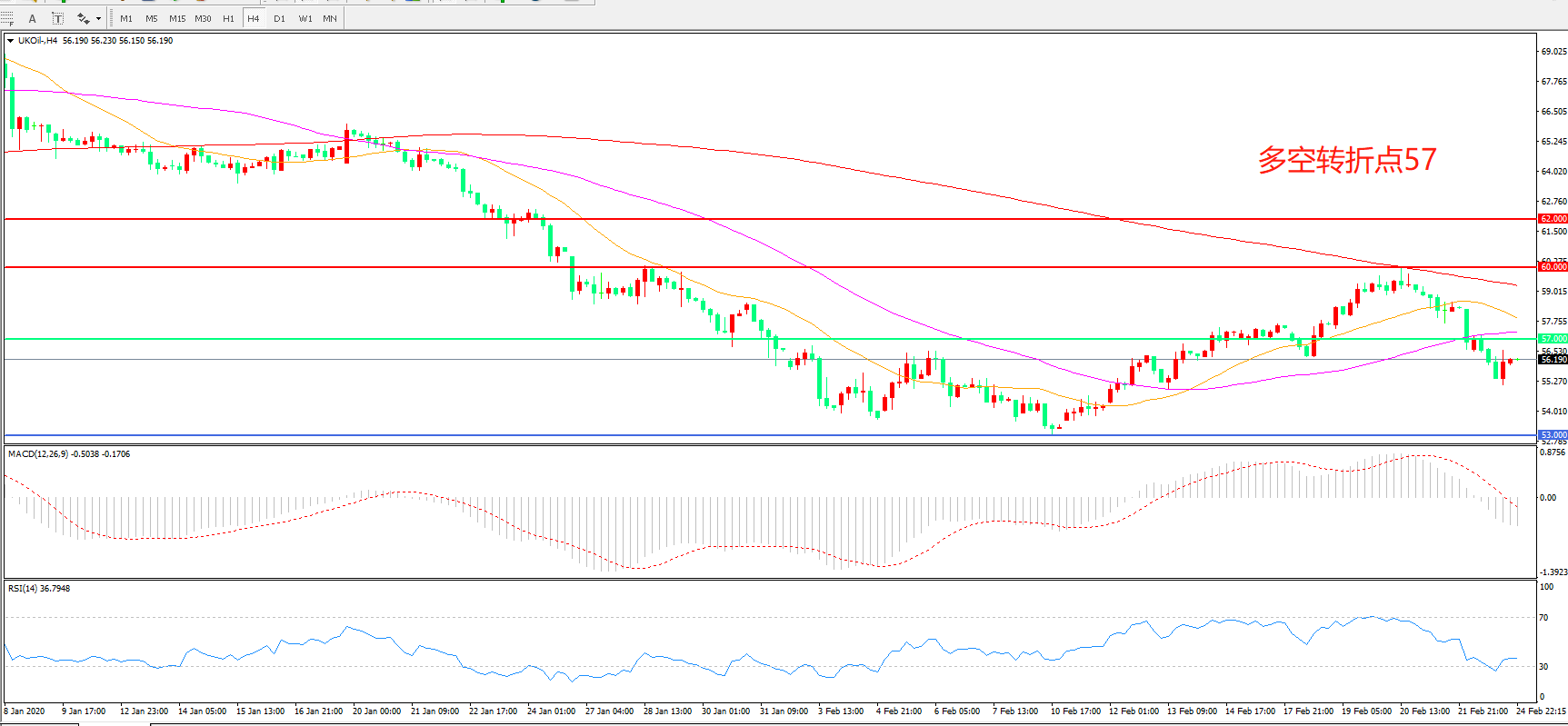 周一(2月24日),国内新冠肺炎疫情的扩散蔓延得到有效控制,但意大利、韩国和伊朗周末均报告确诊病例大幅上升,令市场陷入恐慌,风险资产遭到大幅抛售,布伦特原油收跌3.8%,报56.19美元/桶,创2月12日以来最低收盘。